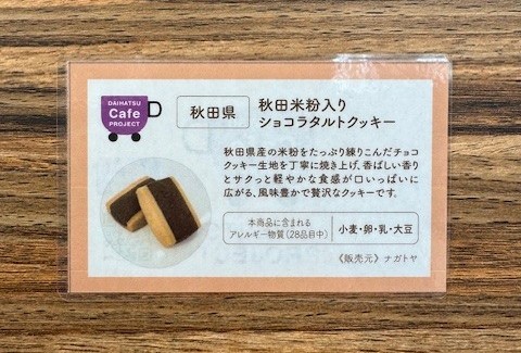 秋田県産の米粉をたっぷり練りこんだチョコクッキー生地を丁寧に焼き上げ、